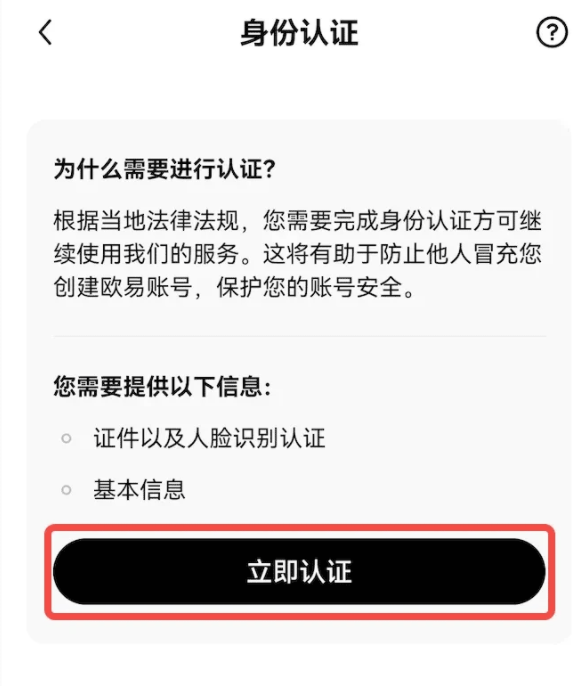 登录账号后,点击左上角个人中心图标--【个资料和设置】--【个人资料】--【身份认证】,进入身份认证页面。如果未完成认证,请点击【立即认证】,您需要上传证件照,如身份证的正反面,并通过人脸识别,根据页面提示完成证件上传和实人认证。